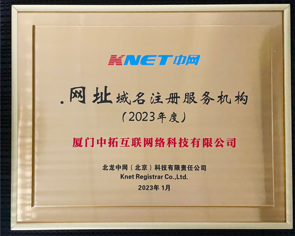近日,数商引擎荣获2023年度中网授权的.网址域名注册服务机构,是对于我们推动网址品牌保护方面工作成效的肯定。