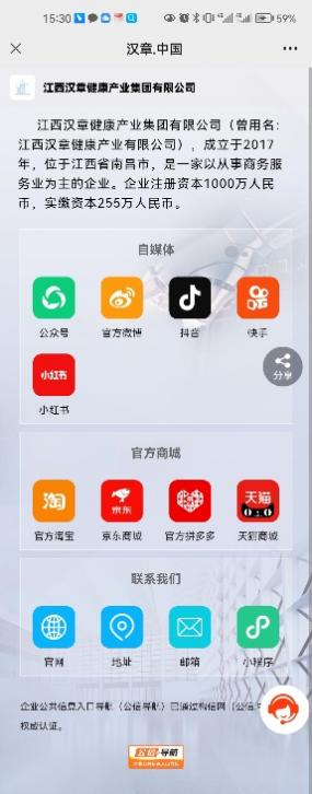 为了方便用户获取企业的各种信息和媒体号,汉章集团在其“导航页”上整合了抖音、微信公众号、官方网站、官方商城、企业电话等多个媒体号和信息,为用户提供了一站式访问企业所有自媒体的便利。同时注册启用国家顶级中文域名“汉章.中国”“汉章中医院.中国”,用户只需在移动设备浏览器地址栏中输入中文域名“汉章.中国”“汉章中医院.中国”,即可直接访问导航页,一览企业的多个官方媒体号和商城号,轻松获取所需信息,大大提升了用户体验。