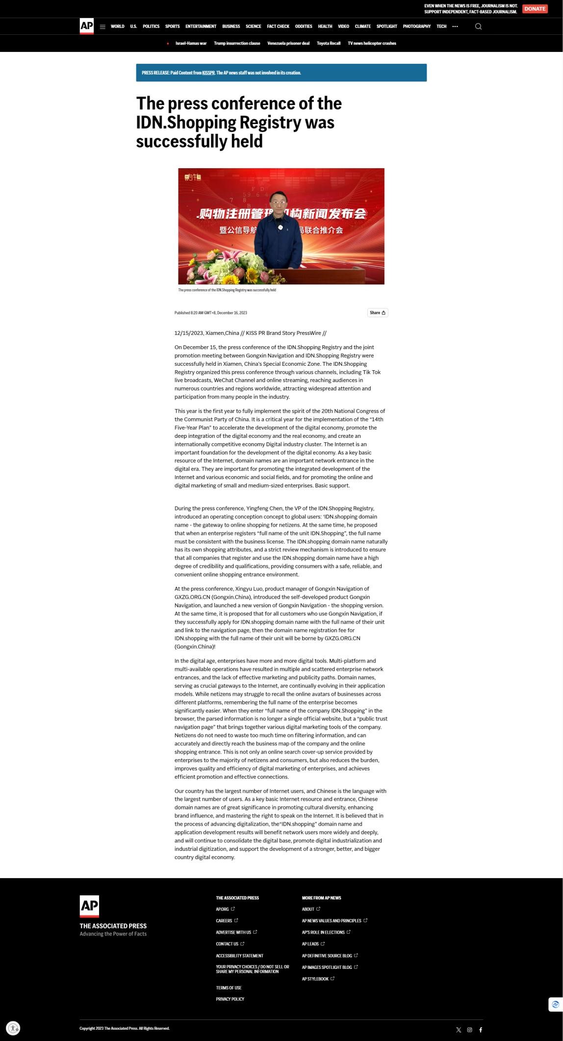 12月16日,美联社报道了.购物注册管理机构新闻发布会的成功举办。文中强调了数字经济与实体经济的深度融合至关重要,指出互联网是推动数字经济发展的关键基础。域名作为互联网的重要基础资源,在数字时代扮演着重要的网络入口角色。.购物域名以“网民的购物入口”为全新理念,它天然地与购物相关联。为了确保为消费者提供安全、可靠和便捷的网络购物环境,购物注册局实施了严格的审核机制。此外,通过.购物域名的创新应用——公信导航,为单位提供品牌数字化营销的减负、提质和增效服务。这一举措旨在推动数字化营销的发展,使单位能够更有效地与消费者进行连接,同时也为消费者提供更便捷、安全的购物体验。